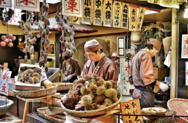 [교토 니시키 시장] 지금으로부터 약 400년 전 일본 교토의 왕실의 식자재를 공급하는 주요 공급지인 니시키 시장은 오늘날 현대인에게 전통 시장으로 둔갑이 되었습니다. 니시키 시장에서 어마어마한 양의 음식점과 일본 현지인들의 삶을 잠깐이나마 엿볼 수 있습니다.
