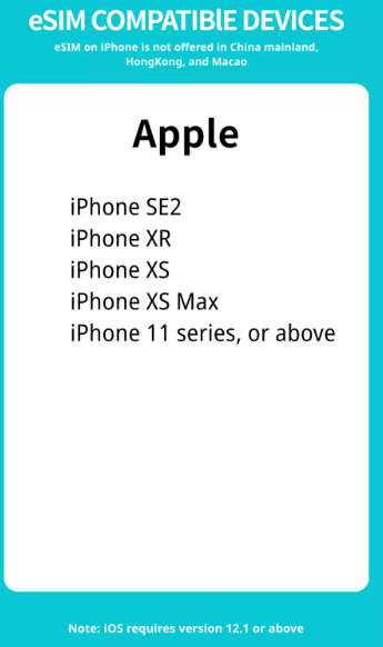 * 중국에서 판매되는 iPhone은 eSIM을 지원하지 않으며 홍콩 및 마카오에서 판매되는 일부 휴대전화는 eSIM을 지원하지 않습니다(iPhone 12 mini, iPhone SE2 및 Phone XS 제외).