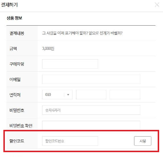 할인코드를 입력하시면 할인을 받을 수가 있어요.