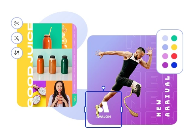 텍스트를 추가하고 색상을 바꾸며 배경을 없애는 등의 작업을 전문 디자이너가 아니어도 할 수 있도록 만들어줄 간편 편집 도구를 이용해 시각 자료를 사용자 지정하세요. 효율적인 디자인을 빠르게 만들어 줄 템플릿 수천 개도 있습니다.