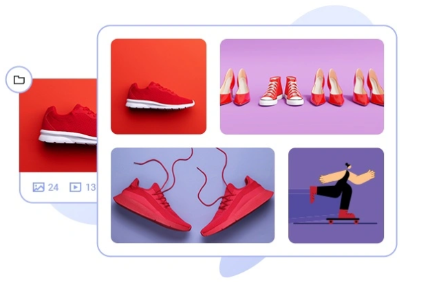 간소화된 액세스 및 검색을 위해 통합된 위치에 모든 콘텐츠 보관: Shutterstock 및 기타 출처의 이미지, 동영상, 음악. 검색과 분류에 사용할 시간을 아껴 창조적인 작업에 더 집중하세요.