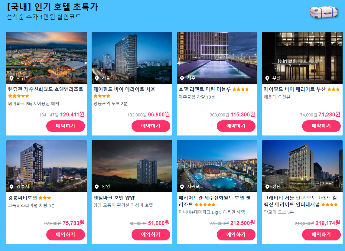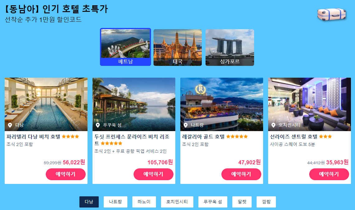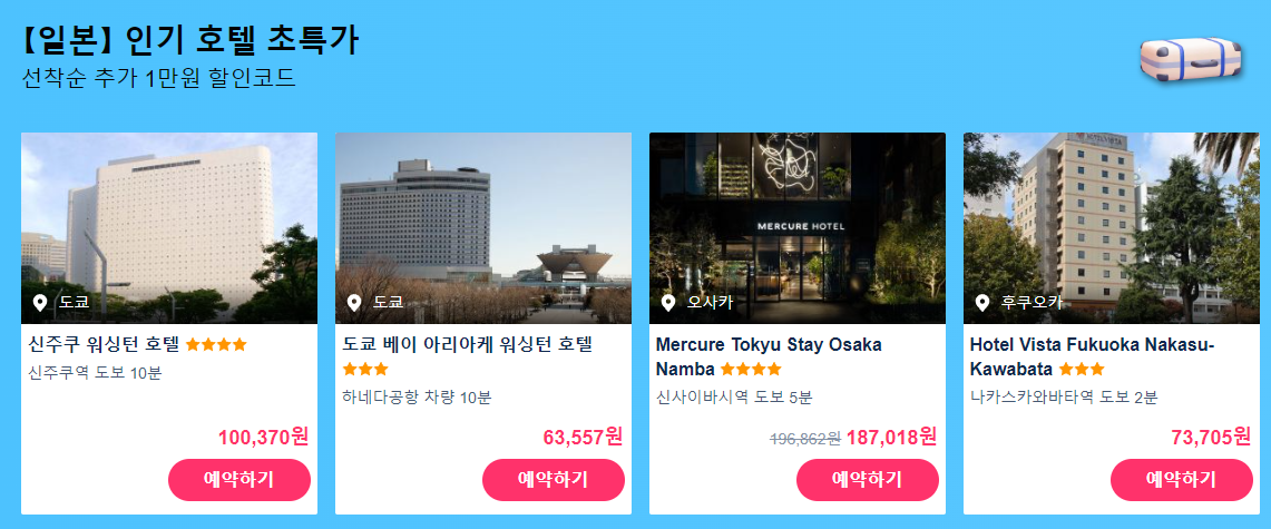 - 국내&일본&동남아(태국/베트남/싱가포르) 호텔 단독 특가