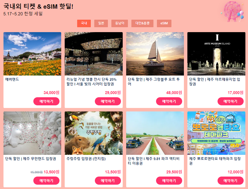 - 국내&일본&동남아(태국/베트남/싱가포르) 액티비티 특가