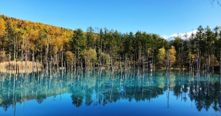 신비로운 밝은 코발트 블루 색조의 연못. 푸른 물이 흐르는 신비한 연못과 그 주변에 오래된 낙엽송이 장관을 이룹니다. 파란색 음영은 계절과 날씨에 따라 바뀝니다. 푸른 연못은 1997년 전문 사진 작가에 의해 발견되었습니다. 그 후 사진 애호가들 사이에 명성이 퍼졌고, 2014년 TV에 소개된 후 전국적으로 유명해졌습니다. Apple의 배경 화면으로도 사용되어 현재는 세계적으로 유명한 곳입니다. 비에이에서 가장 유명한 관광지이자 한 번쯤은 보고 싶은 장관입니다.