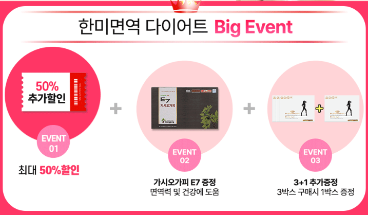 그럼 이상으로 50대 중년다이어트 한미면역 다이어트 최대 50% 할인, 사은품 포스팅을 마치겠습니다.