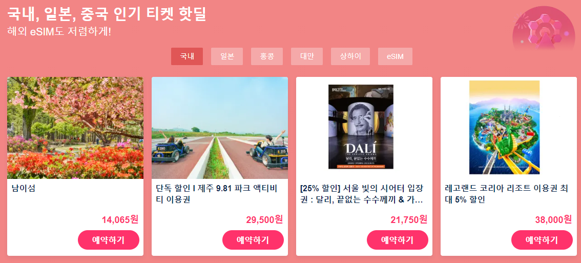 2. 기획전 상품 : 국내 및 아시아(일본/태국/베트남) 호텔, 항공, 액티비티 딜