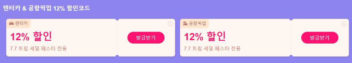 렌터카 공항 픽업은 12% 할인코드가 배포됩니다.