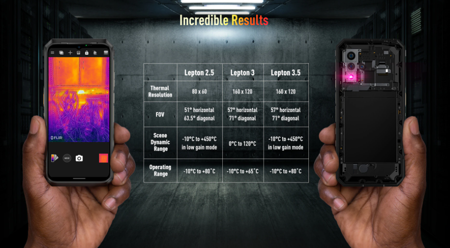 Ulefone Power Armor 19T 는 현재까지 가장 높은 해상도의 FLIR Lepton인 Lepton 3.5 특징으로 열 이미징을 극적으로 개선합니다. 이 전문가 급 센서는 4 을 제공합니다.