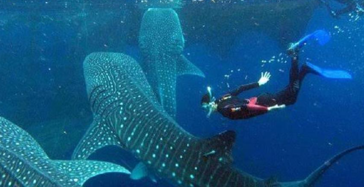 엄청난 크기를 자랑하지만 위험하지 않은 고래상어를 가까이서 만나고 사진까지 남길 수 있답니다.