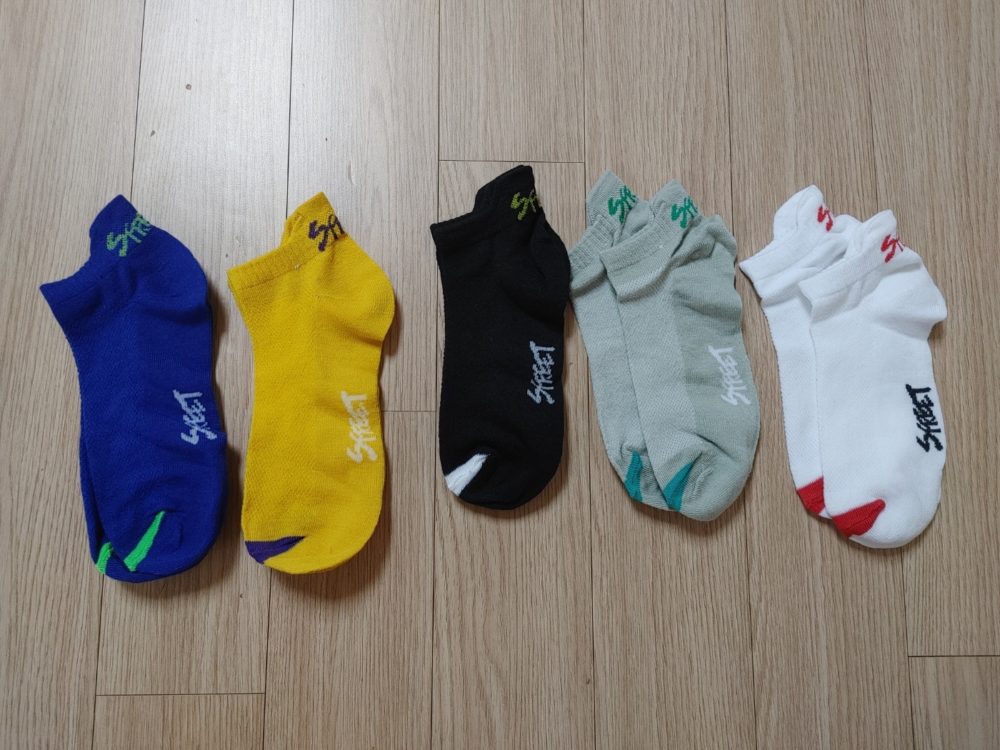 이번에 구매한 양말 5켤레에요.
