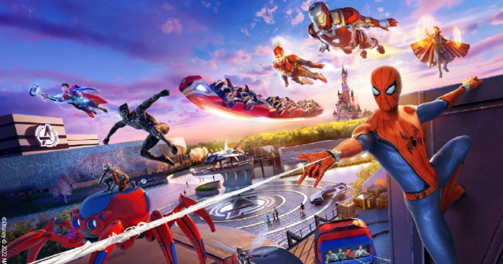 디즈니랜드 파리의 마법 같은 세계를 경험해보세요! ,여러분이 좋아하는 디즈니 캐릭터를 만나보고 인사해보세요! ,디즈니랜드 파리에서 신나는 하루를 보내고, 새로운 어트랙션인 마블 어벤져