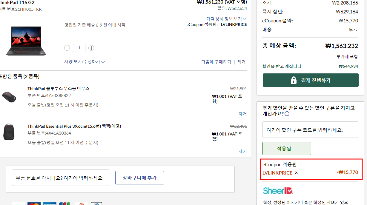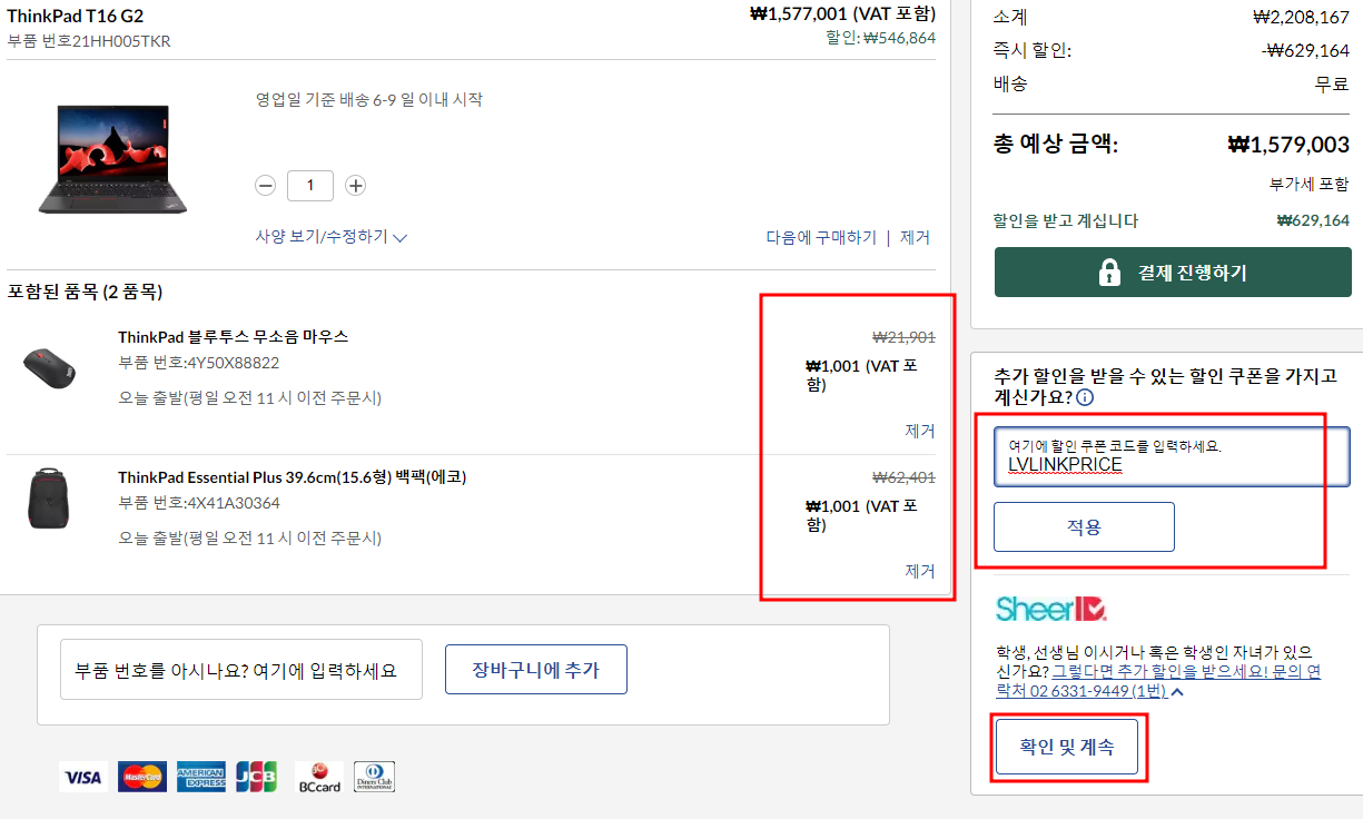 - 할인율: 레노버 자체 할인가격에서 추가 1% 할인