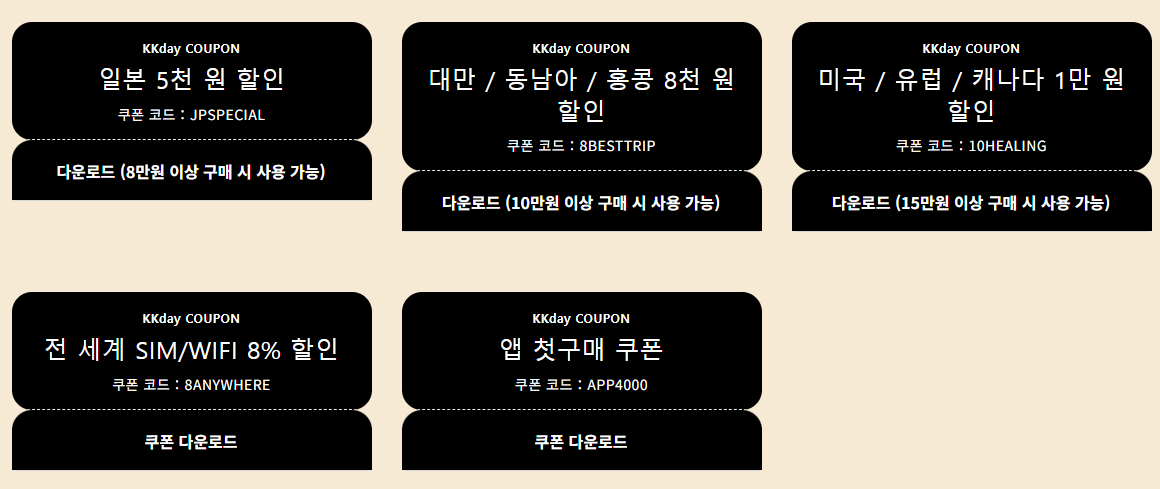 - 전 세계 SIM / WIFI 8% 할인 쿠폰 제공