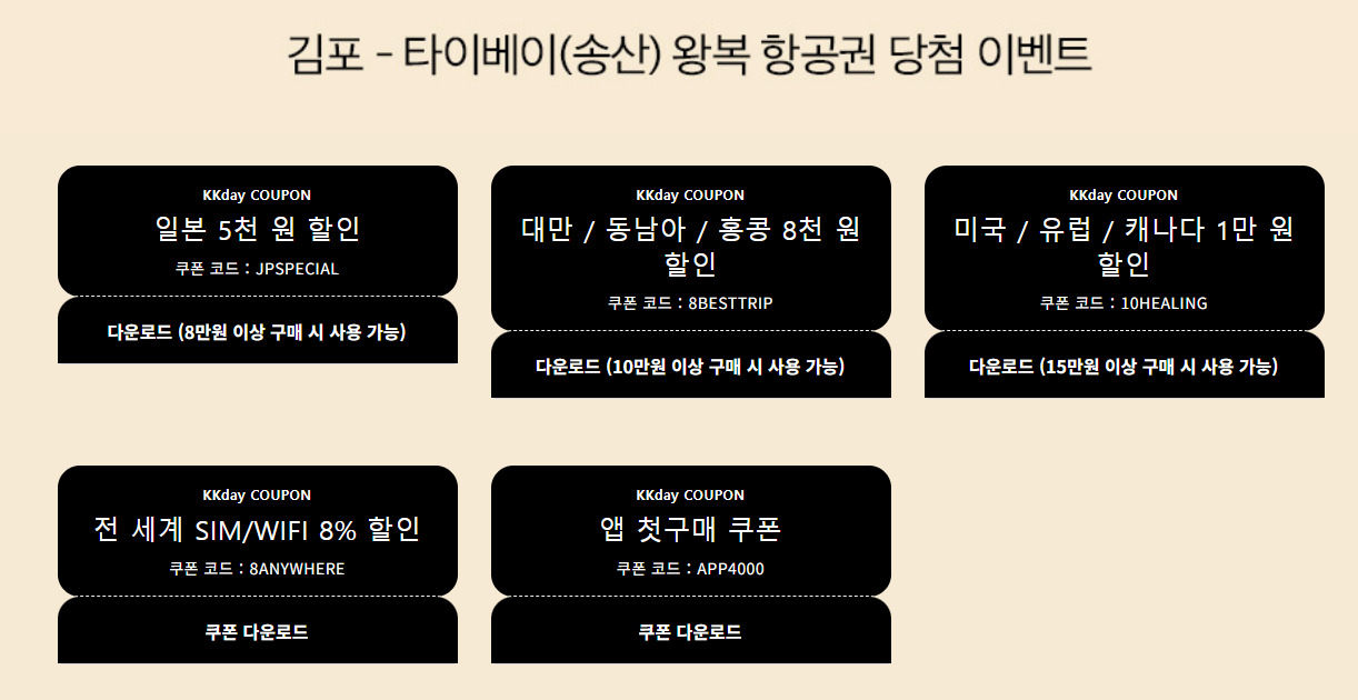 - 김포-타이베이(송산) 왕복 항공권 당첨 이벤트 진행