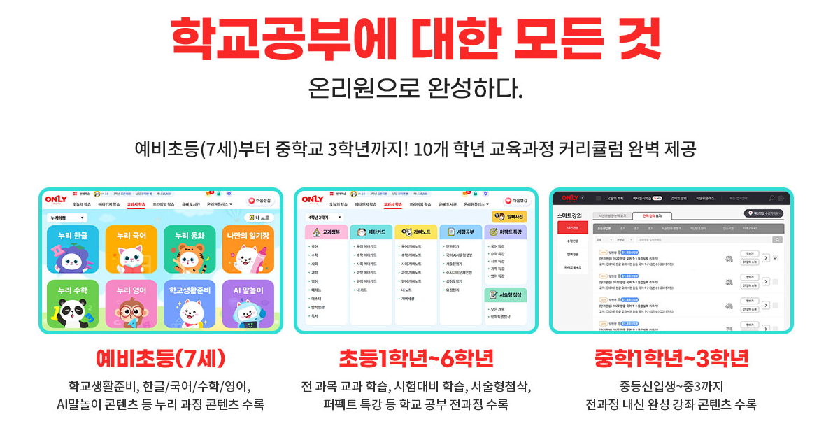 [7세부터 초등, 중학 과정까지 이어지는 온리원 학습]