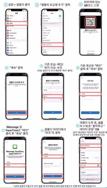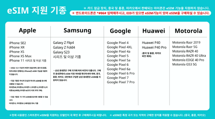* 중국에서 판매되는 iPhone은 eSIM을 지원하지 않으며 홍콩 및 마카오에서 판매되는 특정 휴대폰은 eSIM을 지원하지 않습니다(iPhone 12 mini, iPhone SE2 및 Phone XS 제외).