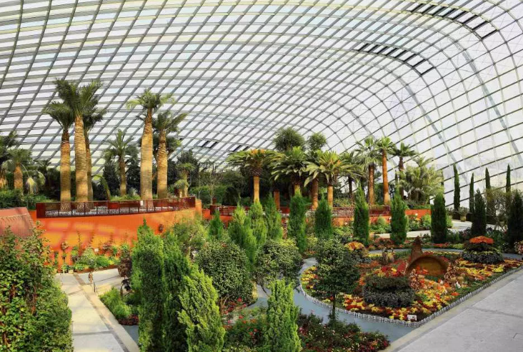 세상에서 가장 큰 온실인 '플라워 돔'에서 아름다운 꽃과 무성히 자란 식물들을 구경하세요.