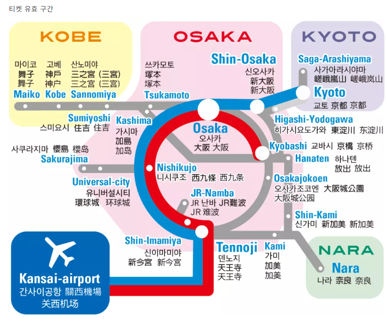 줄 서서 티켓을 사는 시간을 허비하지 않고 오사카, 신오사카, 텐노지, 교토, 고베, 나라까지 편하게 이동하세요.