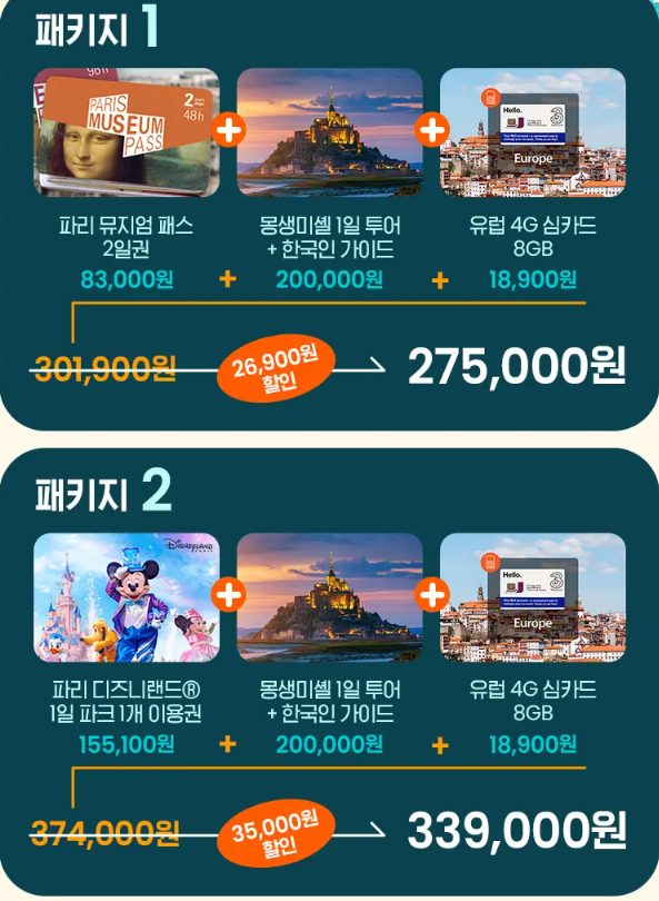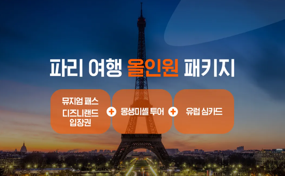 #파리, #프랑스, #여행, #올인원, #패키지, #뮤지엄패스, #디즈니랜드, #몽생미셸투어, #유럽심카드, #할인코드, #할인쿠폰, #바우처