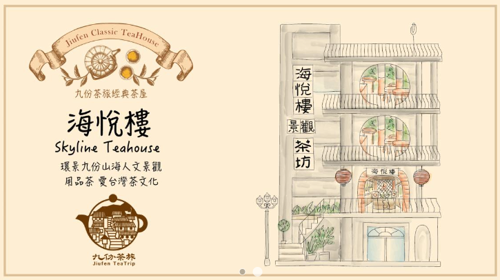 스카이라인 티 하우스(해열루 경관차방)는 지우펀 옛 거리와 성평극장 바로 위에 위치하여 산과 바다를 마주하고 있어 지우펀의 산과 바다, 문화의 전경을 감상하기에 좋은 장소입니다. 찻집은 대만 철도를 이미지화하여 대만 본토의 복고적인 분위기를 표현하고 있으며, 긴 벤치에 앉아 나무 테이블에 기대어 차를 마시며 산과 바다의 아름다운 풍경과 인문학적 건축물을 감상할 수 있습니다. 티하우스에서는 밖으로 나가서 바다와 하늘을 시적으로 연결한 듯한 지룽도의 푸른 바다 풍경을 감상할 수 있고, 저녁이 다가오면 지는 해를 바라보며 좋은 차 한 모금을 마시고, 대만의 소박한 차문화를 느껴보세요.
