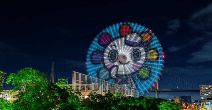 높이 112.5, 직경 100m에 이르는 덴포잔 대관람차에서 아카시 대교와 간사이 국제공항까지 바라볼 수 있습니다.