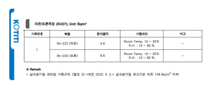 KOTITI 실행 라돈테스트를 합격하였습니다.
