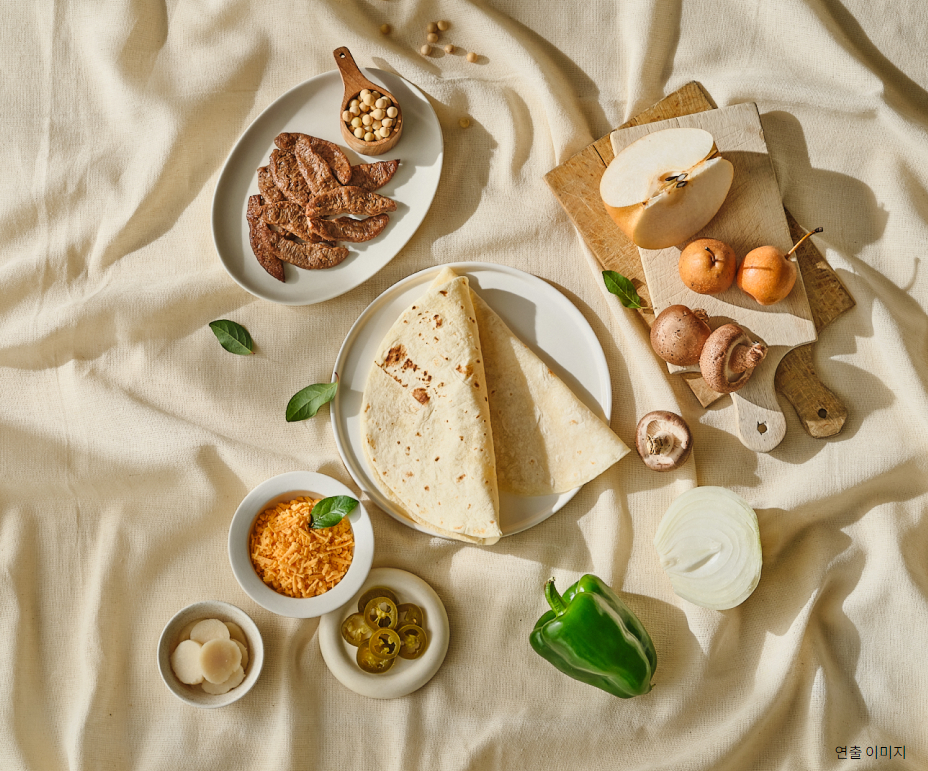 콩으로 만든 식물성 고기를 300℃ 고온에서 직화해서 불 향을 그대로 담아냈어요. 한 입 베어 물면 또띠아의 담백함과 직화의 풍미가 가득 풍겨올거예요.