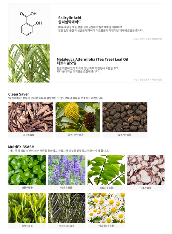 BHA 지용성 효능성분 살리실산이 각질과 피지를 제거하고