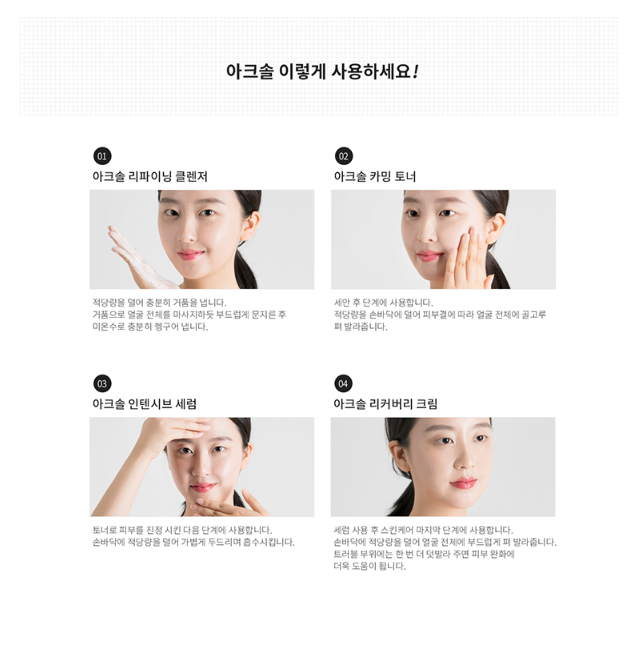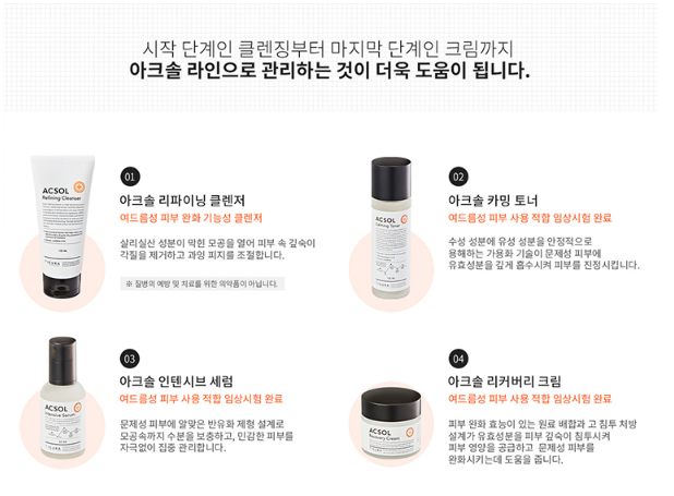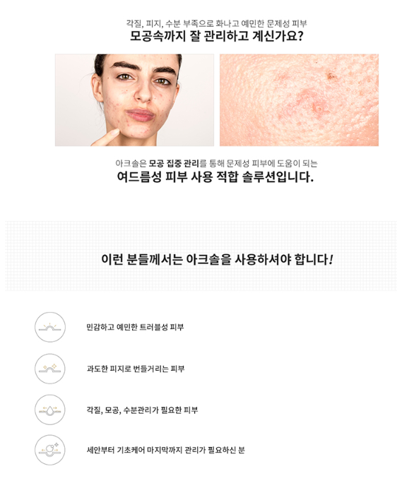아크솔은 문제성 피부를 위한 필수 성분을 담았습니다.