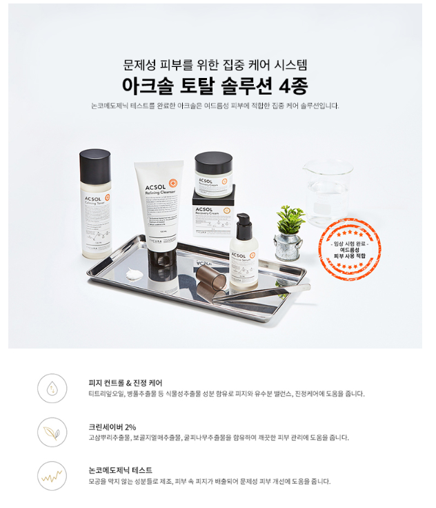 완료한 여드름성 피부 사용 적합 솔루션 입니다.