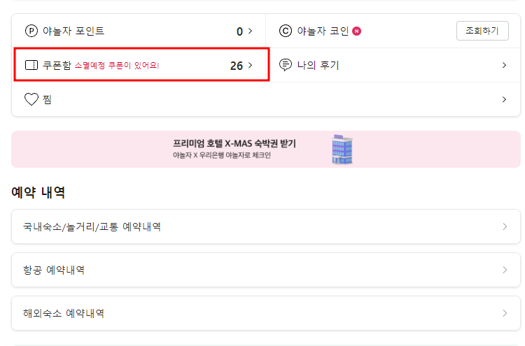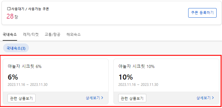 그럼 야놀자 시크릿 할인쿠폰 2장이 생성된 것을 확인 하실 수가 있어요.