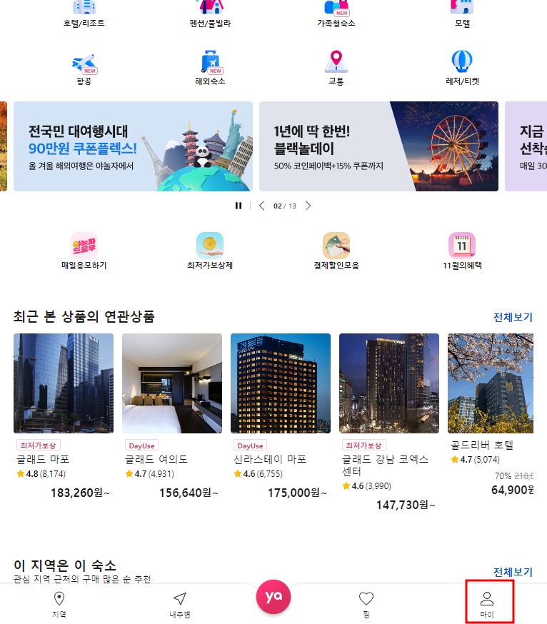야놀자 11월 6%,10% 할인쿠폰 호텔, 펜션, 캠핑, 리조트, 게스트 하우스 포스팅은 제휴마케팅이 포함되어있습니다.