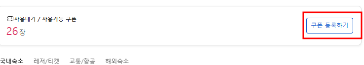 MY야놀자 > 쿠폰함 상단 "쿠폰등록하기" > 쿠폰코드 입력 후 등록하기를 통해 쿠폰 수령