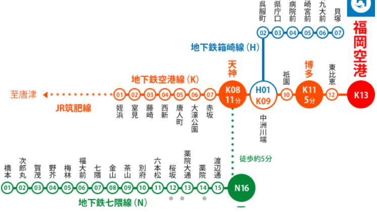 후쿠오카시 지하철 운행 시간 : 06:00-23:00