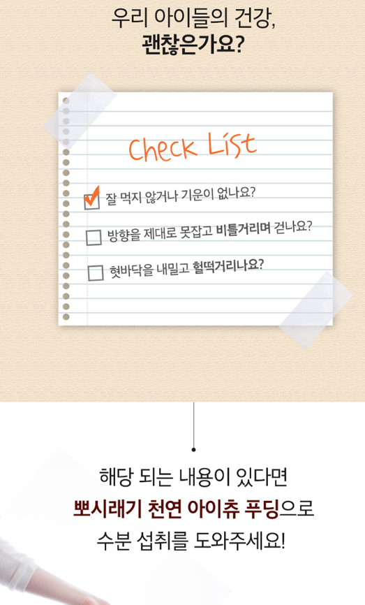 해당되는 내용이 있다면 뽀시래기 천연 아이츄 푸딩으로 수분섭취를 도와주세요!