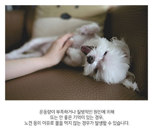 노견 등의 이유로 물을 먹지 않는 경우가 발생할 수 있습니다.