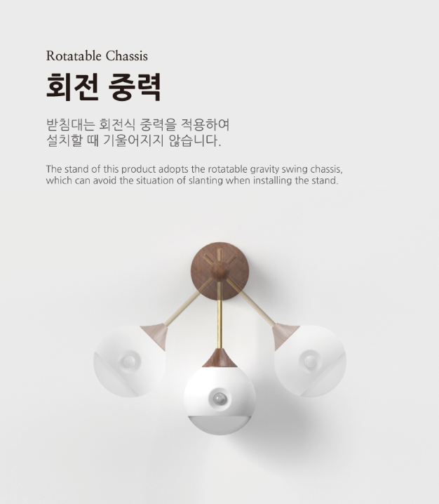 받침대는 회전식 중력을 적용하여 설치할 때 기울어지지 않습니다.
