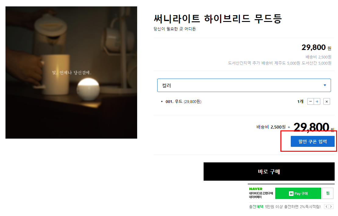 서니라이트 하이브리드 무드등 할인쿠폰 코드를 공유해드릴게요.
