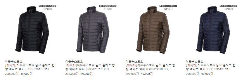 저가의 상품이 아닌 LEEDONGSOO 스포츠의 겨울 상품을 할인하고 있어요.
