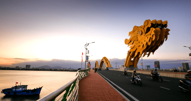 도시의 상징인 드래곤 브릿지를 방문하세요. 다리의 모양은 마치 용을 향해 손을 뻗어 큰 바다로 날아가는 것과 같습니다.