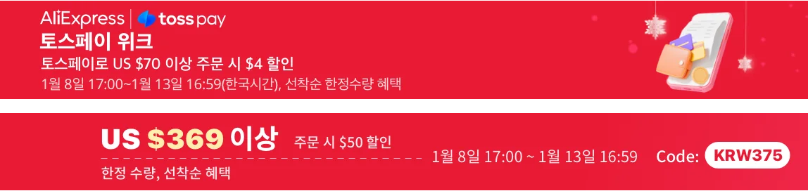- 369달러 이상 구매 시, 50달러 할인코드:KRW375