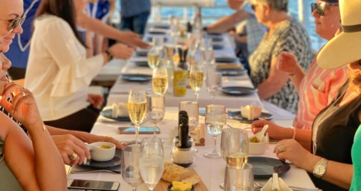 4시간 동안 7코스 고급 해산물 연회 캐치 앤 다이닝 경험을 위해 로트네스트 크루즈(Rottnest Cruises) 선박 탑승