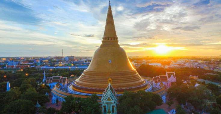 세련된 카페에서 휴식을 취하고 나콘빠톰의 랜드마크인 상징적인 프라빠톰 체디를 방문하세요.
