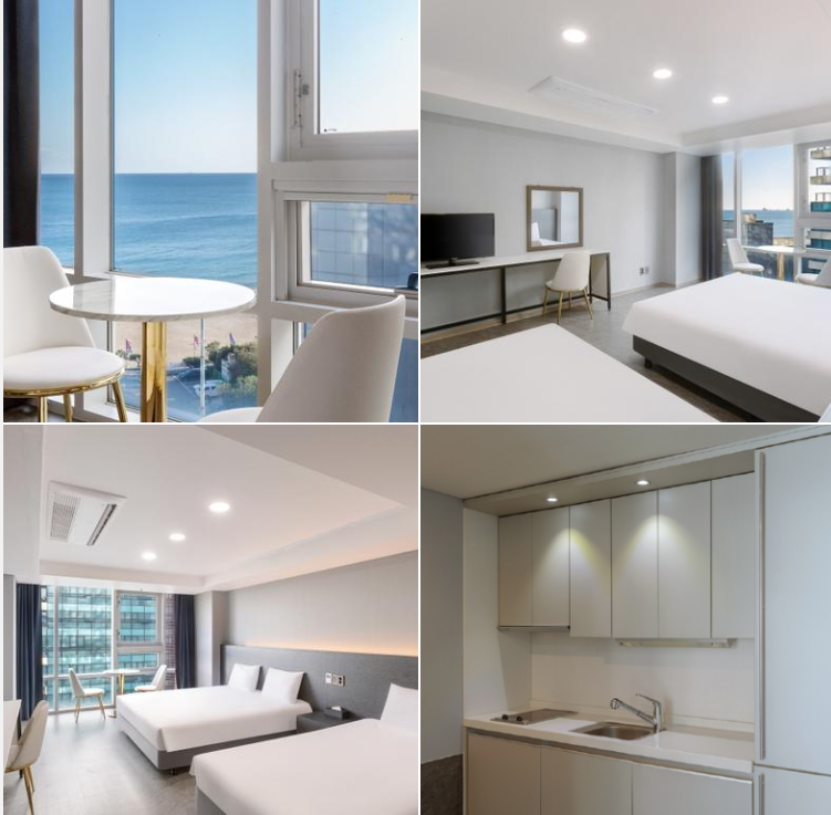 해변가 위치로 접근성이 좋으며, 엘리베이터 갈아타는 게 조금 불편하지만 바다뷰가 멋지고 객실은 깔끔하다는 후기가 많습니다. 객실 크기도 넉넉하고 조리도구 대여도 가능하며, 직원의 친절한 응대와 룸 업그레이드 등 서비스도 좋다는 사용자들의 명언이 있습니다. 한편, 화장실 조금 오래된 느낌이 있지만 대체로 가격대비 만족스러운 가성비 숙소로 손꼽힙니다.