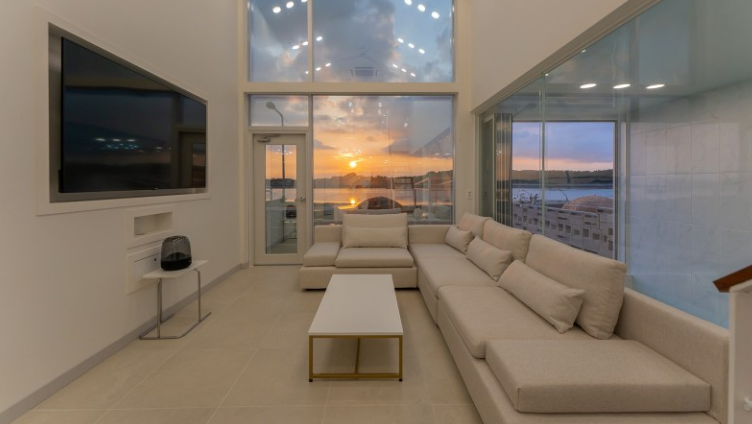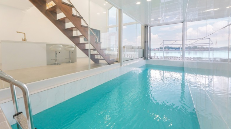 ▷ 오픈형 복층구조에 5m의 높은 천정과 화이트톤 인테리어에 전면 통창으로 개방감과 개별정원으로 편안한 쉼을 추구하였습니다.