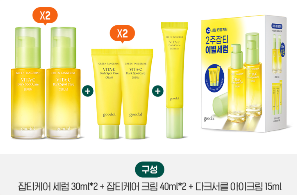 청귤 비타C 잡티케어 세럼 더블기획 (세럼30ml*2+크림40ml*2+아이크림15ml)