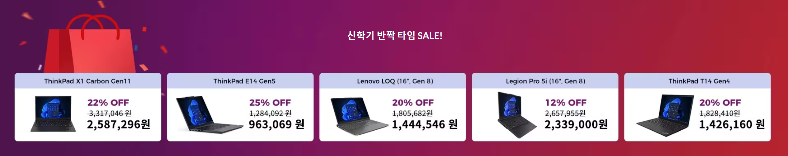 레노버에서 신학기 반짝 타임 세일을 진행하면서