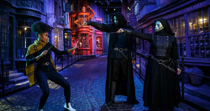 다이애건 앨리, 연회장, 마법부, 덤블도어의 사무실 등 정교한 세트장을 둘러보세요.