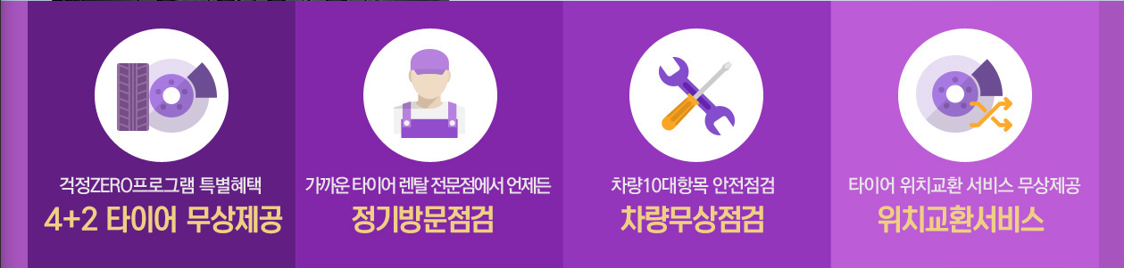 정수기처럼 자동차 타이어를 렌트해서 사용 할 수 있는 걱정ZERO프로그램이에요.