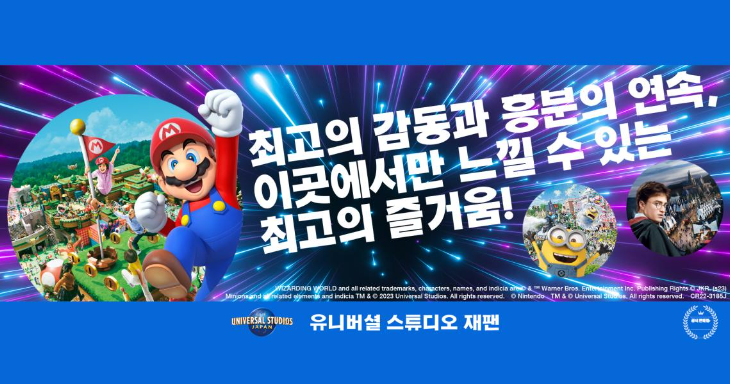 테마파크 업계에서 가장 영예로운 Thea상을 받은 전 세계 최초 마리오 파크와 마리오카트 : 쿠파의 도전장™을 체험할 수 있는 것은 물론, 위저딩 월드 오브 해리 포터™ 및 미니언 등 대규모 놀이 시설이 있어 남녀노소 모두 함께 즐기실 수 있습니다. 감동과 흥분이 가득한 테마파크에서 끝없는 기쁨을 만끽하세요!